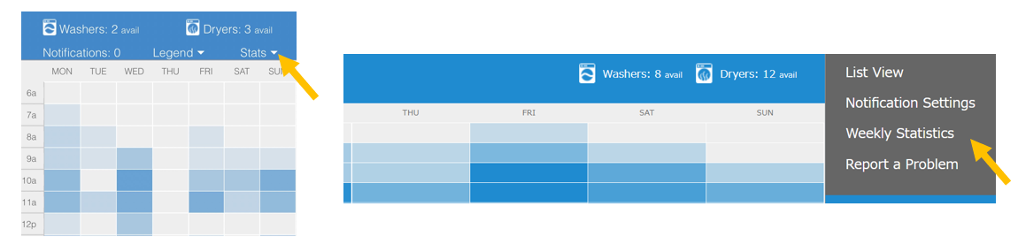 時間帯の混雑状況目安はスマホ表示の場合は“Stats”から、PCやタブレットの画面が大きい端末ならWeekly Statisticsから確認できます。